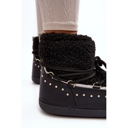 Jedinečné dámské sněhule jsou vyrobeny z chladu a větru odolného materiálu. Svršek s umělou ovčí kůží a cvočky je perfektní na podzimní a zimní období. Klasický nazouvací model s dodatečným šněrováním. Sněžnice byly namontovány na masivní platformě. Uvnitř mají izolaci v podobě pěny a deku na boty, které poskytují vysokou ochranu v chladných dnech. Při výběru velikosti se řiďte tabulkou velikostí.