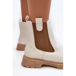 Dámské kotníkové boty nízkého střihu. Vyrobeno z eko kůže. Nasazené na plochém podpatku a silné podrážce. Elastické vsadky na svršku. Zaoblené prsty. Model se zapíná na zip na boku. Podpatek je vyztužený. Tento klasický styl můžete sladit téměř s každým podzimním stylingem! Při výběru velikosti se řiďte tabulkou velikostí.