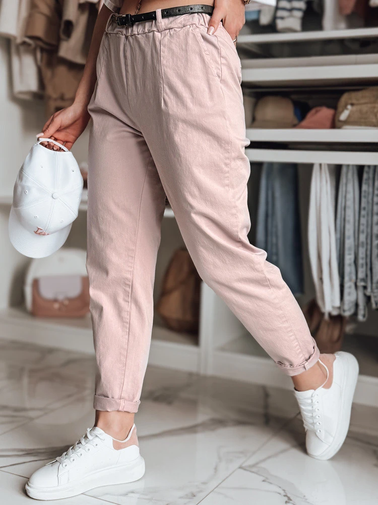 Dámské chinos kalhoty s páskem RELCIX růžové FashionStreet UY2583