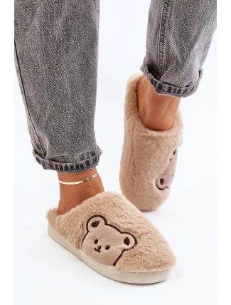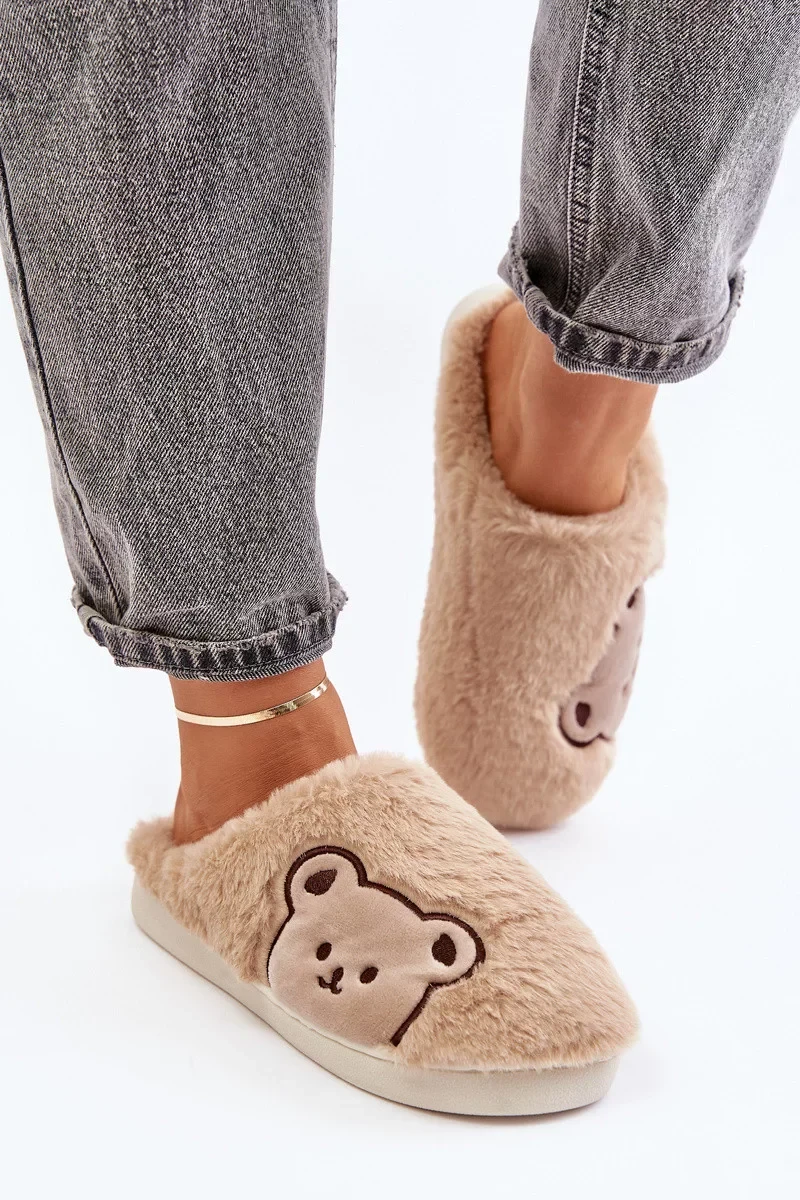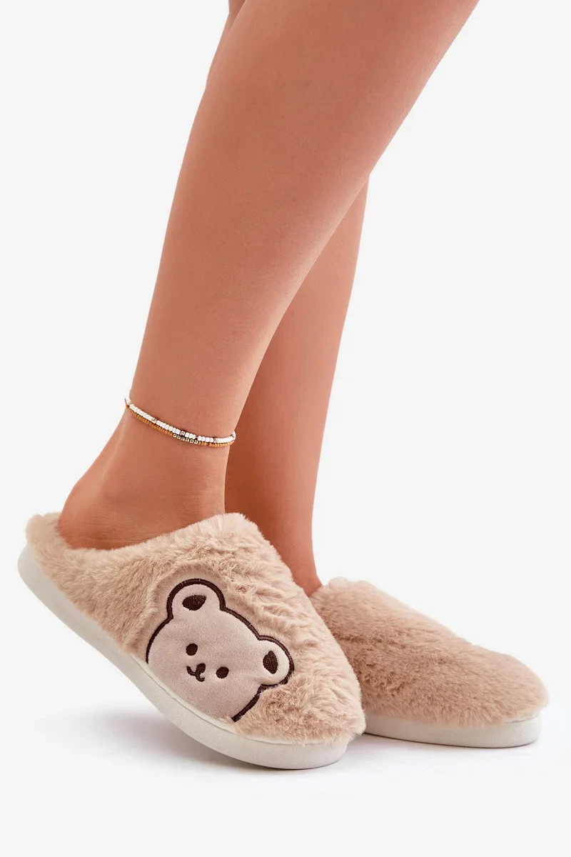 Dámské Chlupaté Pantofle S Medvídkem Béžové Fiorinella