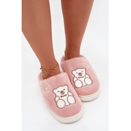Dámské chlupaté papuče s medvídkem – růžové Noralie
