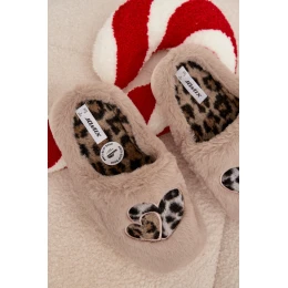 Béžové dámské papuče Amandra s měkkým kožíškem a hravými srdíčky přinášejí pohodlí a útulný pocit při domácím nošení. Lehká konstrukce a měkká podrážka zajistí komfort po celý den.