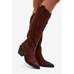 Dámské cowboy kozačky na podpatku z přírodního semiše Artiker – hnědé