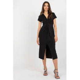 Šaty rovného střihu s krátkými rukávy a výstřihem do V. Ozdobné řasení na přední straně.
