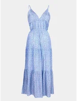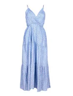 Dámské dlouhé letní šaty, v pase prošité, vzadu s rafinovaným výstřihem. Zapínání na zádech, skrytý zip. Podšité spodničkou do půlky stehen.