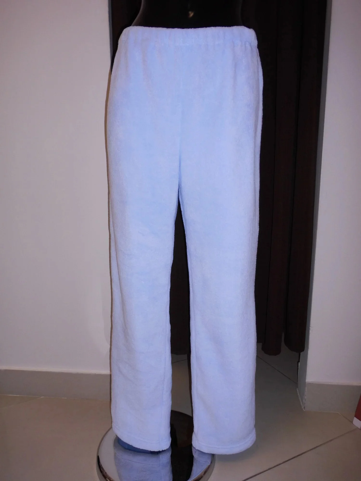 Ve světle modré barvě, na zadní straně zdobené smetanovou výšivkou.