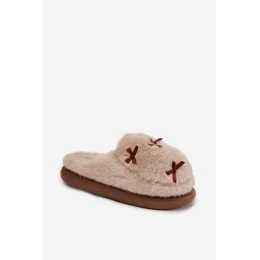 Dámské domácí pantofle s kožíškem a mašličkami – béžové Saviera