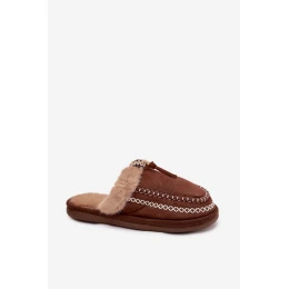 Dámské domácí pantofle s kožíškem a výšivkou – hnědé Perivelle