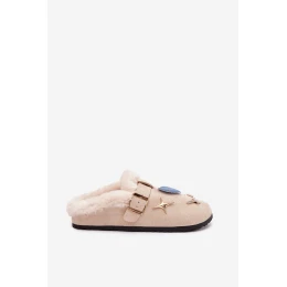 Dámské domácí pantofle se sponou a kožíškem – béžové Thalora