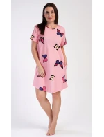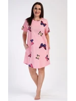 Dámská bavlněná noční košile s krátkým rukávem Butterfly. Dámská noční košile s kulatým výstřihem je jednobarevná, na hrudi má nápis 'Keep up your faith' a obrázek motýla. Použitý materiál s obsahem bavlny 100% je příjemný a poddajný na dotek.