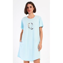 Dámské bavlněné domácí šaty s krátkým rukávem Queen. Domácí jednobarevné šaty s kulatým výstřihem a kapsami zdobí na hrudi obrázek písmene Q a drobný nápis. Použitý bavlněný materiál je příjemný a poddajný na dotek. Šaty jsou pohodlné, využijete je na spaní a také téměř při všech volnočasových aktivitách.