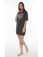 Dámské domácí šaty s krátkým rukávem Srdce. Pohodlné dámské šaty mikinového typu mají ve spodní části šňůrku ke stažení. Na přední části je obrázek srdce s efektem připomínajícím průstřihy. Šaty jsou díky svém střihu pohodlné, a jistě je využijete téměř při všech volnočasových aktivitách. Použitý materiál je příjemný a poddajný na dotek.