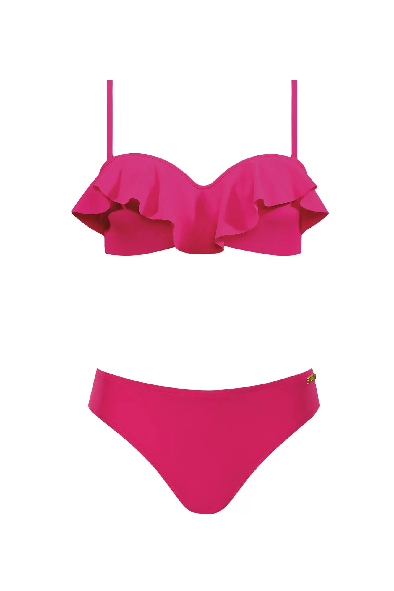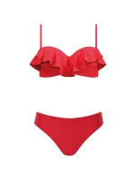 Dámské dvojdílné plavky značky Self. Vrchní díl je vyztužený kosticí spolu s nastavitelnými ramínky. Ozdobený je volánkem.