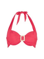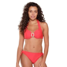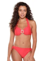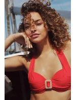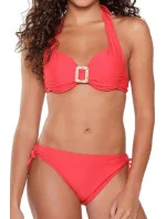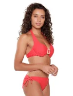 Dámské dvoudílné plavky 7214 red LingaDore - červená barva - košíčky zdobené řasením - mezi košíčky spona - zavazování za krkem nebo na zádech - kalhotky nižšího střihu - zavazování na bocích