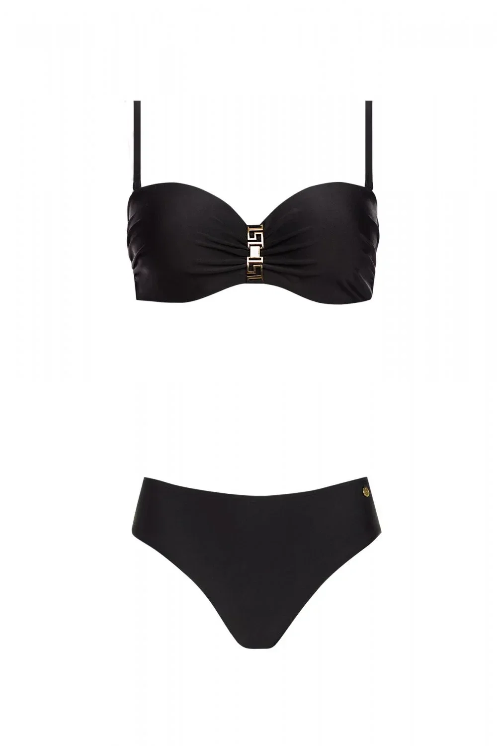 Dámské dvoudílné plavky Gold 1 730CH1 19 SELF - černá barva - z příjemného elastického materiálu - termicky formované - košíčky jsou vyztužené kosticemi - ozdoba mezi košíčky - nastavitelná ramínka - plavkové kalhotky klasického střihu - rychleschnoucí materiál, odolný proti chlóru a slunci