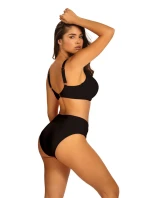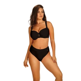 Dámské dvoudílné plavky Bayamon 6 995BM6 19 SELF - černá barva - z hladkého mikrovlákna - vyztužené košíčky - mezi košíčky ozdoba - s kosticemi - nastavitelná a neodepínatelná ramínka - klasické kalhotky - vyšší pas - rychleschnoucí materiál, odolný proti chlóru a slunci