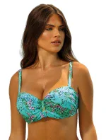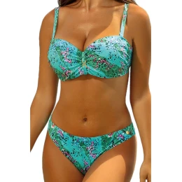 Dámské dvoudílné plavky Bora Bora 1 730BR1 1 SELF - zelená barva - z vysoce jakostního mikrovlákna - typ bardotka - se vzorem - vyztužené košíčky s kosticemi - mezi košíčky ozdoba - nastavitelná a ramínka - zadní díl s nastavitelným zapínáním - kalhotky klasického střihu - rychleschnoucí materiál, odolný proti chlóru a slunci