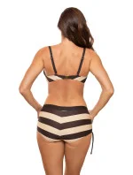 Dvoudílné plavky z italské tkaniny Carvico Tessuti. Podprsenka bez push-up, s kosticemi zapínanými na zádech. Vyztužené košíčky, nastavitelná ramínka, neodnímatelná. Kalhotky s nízkou elasticitou, podšité, s bočním zavazováním.