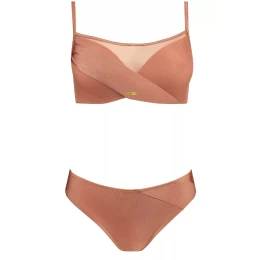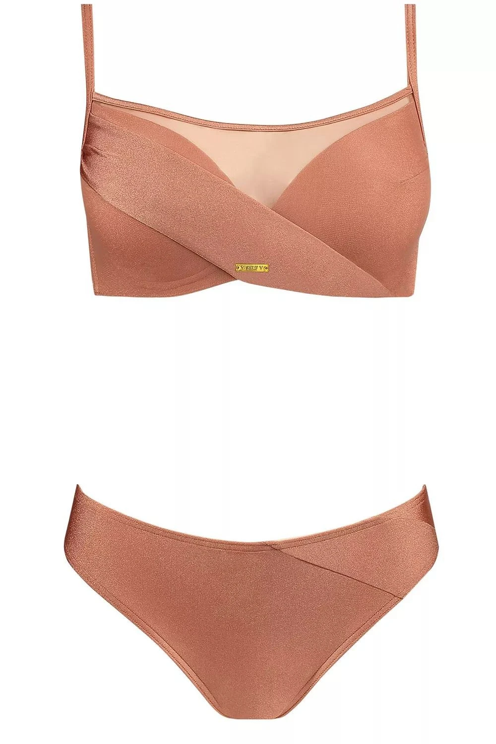Dámské dvoudílné plavky Fashion 10 1002N 25 SELF - béžová barva - z vysoce jakostního mikrovlákna - tvarované košíčky tepelně upravené - typ push up - dekolt zdobený síťovinou - nastavitelná a odepínatelná ramínka - kalhotky hladké