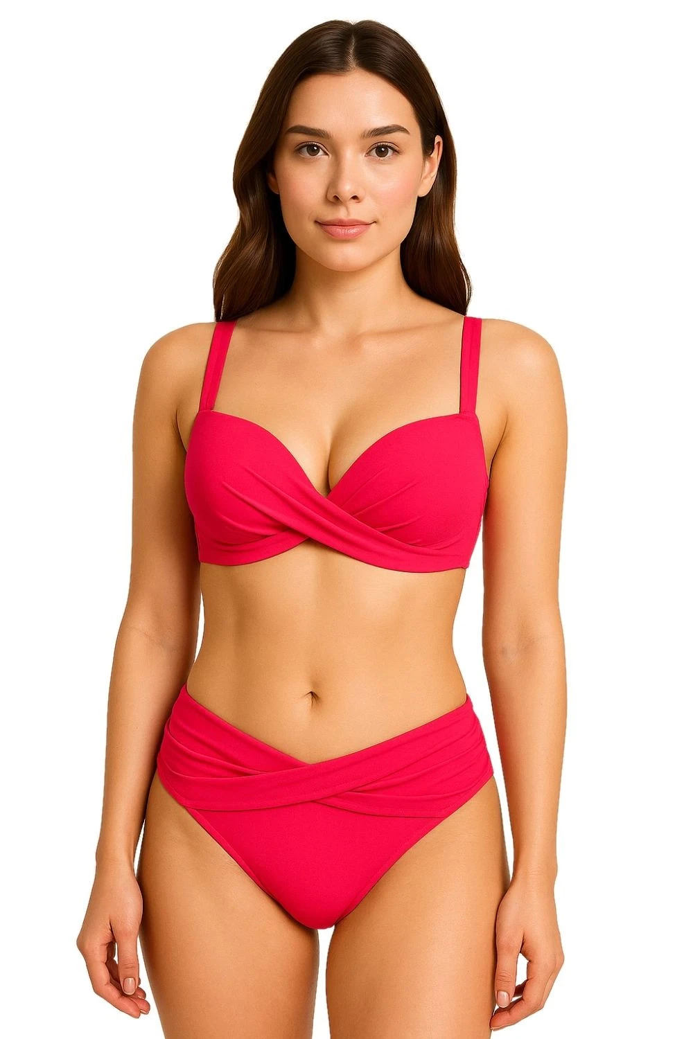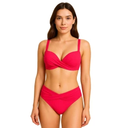 Dámské dvoudílné plavky Fashion 29 995SV1 2 SELF - růžová barva - z vysoce jakostního mikrovlákna - vyztužené košíčky - push-up efekt - zdobené volánky na podprsence i kalhotkách - s kosticemi - nastavitelná ramínka - odolné proti chlóru