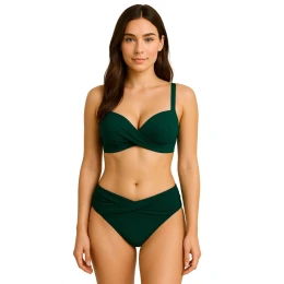 Dámské dvoudílné plavky Fashion 29 995SV1 7 SELF - zelená barva - z vysoce jakostního mikrovlákna - vyztužené košíčky - push-up efekt - zdobené volánky na podprsence i kalhotkách - s kosticemi - nastavitelná ramínka - odolné proti chlóru