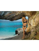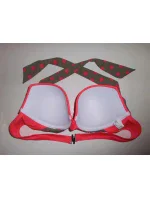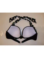 Dvoudílné dámské plavky s vyztuženou podprsenkou, široká ramínka na vázání za krk, zapínání na zádech.