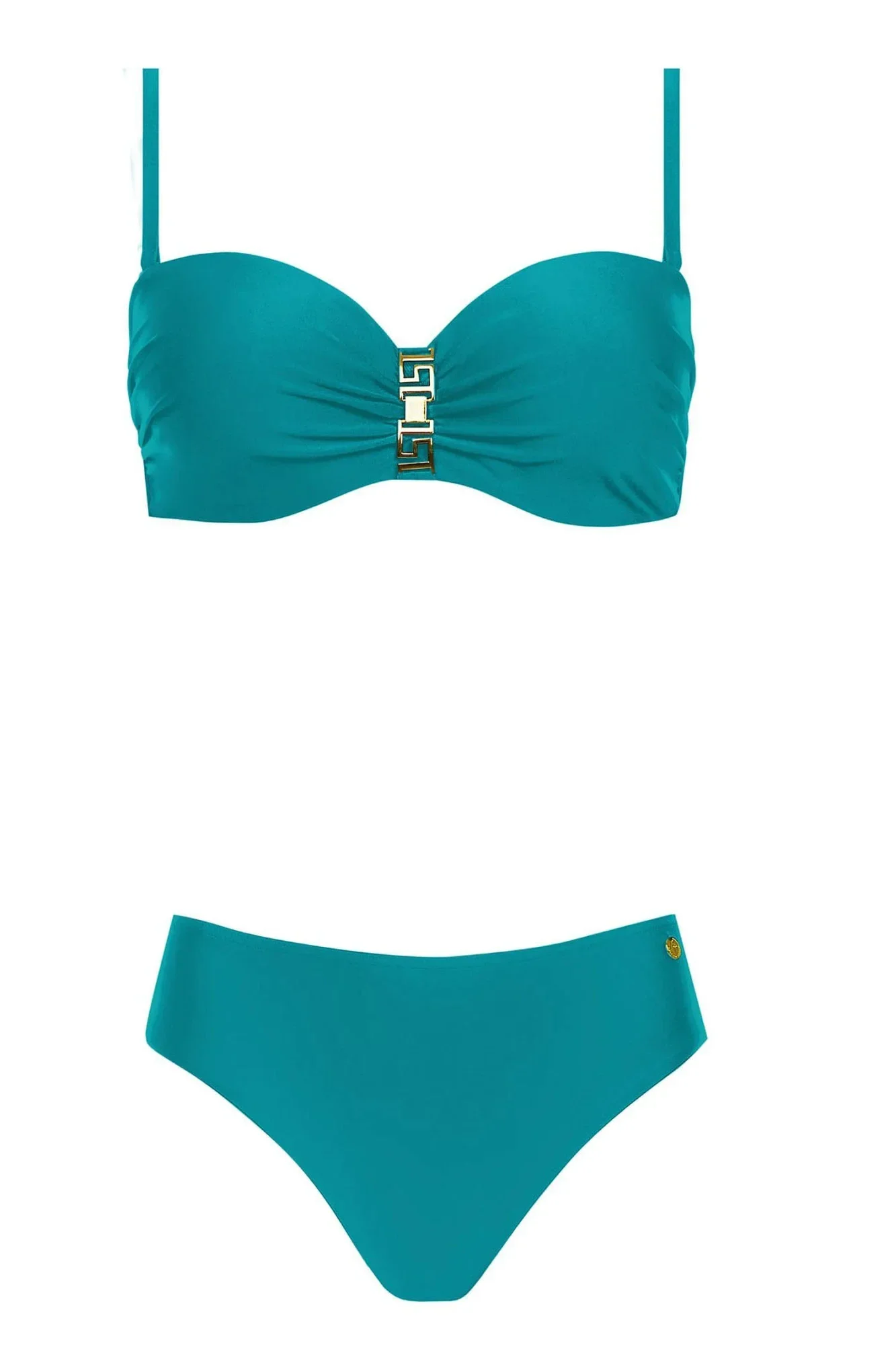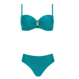 Dámské dvoudílné plavky Gold 1 730CH1 10 SELF - tyrkysová barva - z příjemného elastického materiálu - termicky formované - košíčky jsou vyztužené kosticemi - ozdoba mezi košíčky - nastavitelná ramínka - plavkové kalhotky klasického střihu - rychleschnoucí materiál, odolný proti chlóru a slunci