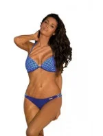 Pokud dáváte přednost nenápadným, jednoduchým bikinám, neváhejte sáhnout po modelu Luna. Elegantní, sexy a velmi decentní plavky. Vrchní díl tvoří vyztužená podprsenka s trojúhelníčkovými košíčky. Výztuha je jemná, pěnová, s anatomicky tvarovanou vycpávkou ve spodní části. Látka je károvaná, modrou barvu doplňuje bílá. Obvod se směrem dozadu zúžuje a přechází do elastických šňůrek, díky kterým lze jeho velikost regulovat. Ramínka za krk jsou také na zavazování. Mírně nařasená látka na košíčcích umocní efekt modelace a nechá ňadra hezky vyniknout. Spodní díl tvoří mini bikiny. Kalhotky úzkého a nižšího střihu. S podšitou přední stranou, aby vše zůstalo skryto i po namočení. Látka je tmavě modrá, lemování je doplněno elastickou gumičkou. Boky zdobí károvaný pruh tkaniny, který nelze regulovat, ale dodává plavkám větší šmrnc. A hezky zvýrazňuje boky. Na přední straně kalhotek vyniká logo výrobce Marko. Klasický, hladký model, který se nenechá zahanbit nejnovějšími kousky.