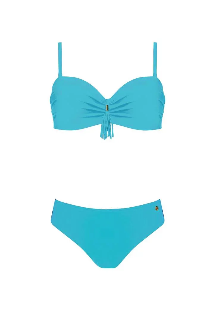 Dámské plavky dvoudílné bikiny D-RING zdobené třásněmi na podprsence a kovovými doplňky modré - Modrá - OEM