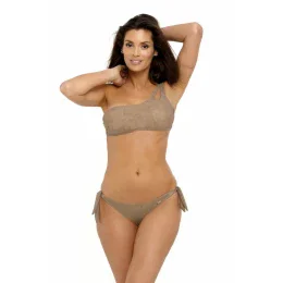Něco rozhodně jiného, originálního a nápaditého, proto je nabídka směrována ženám, které chtějí být viditelné v davu lidí a vsázet na nebanální řešení, jiné než mají všichni. Takže pokud půjdeme tímto směrem, tak Vám s radostí můžeme nabídnout krásné plavky Sabrina M – 524, které svojí originalitu vděčí jak látce imitující semiš, tak střihu. Kalhotky vázané po stranách, podprsenka na jedno rameno a díky této své asimetrii získává na efektivitě. Tyto plavky v každém případě doporučujeme jelikož potěší každou ženu.