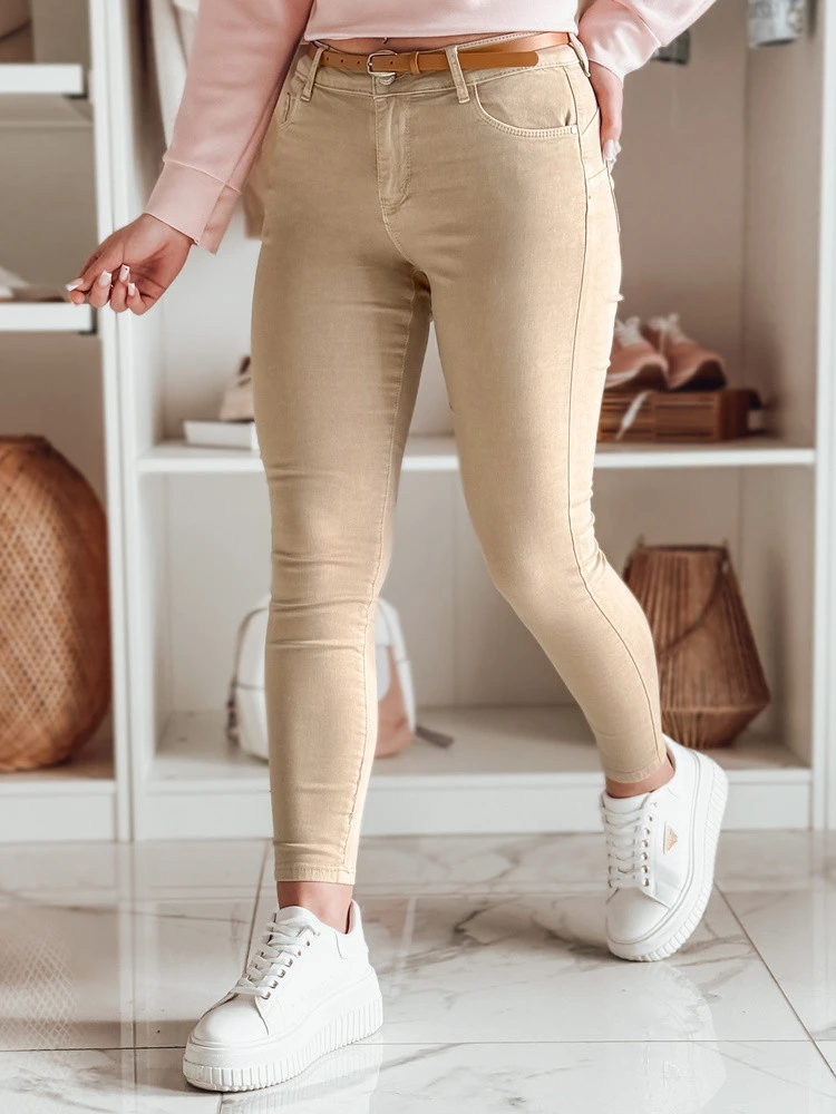 Dámské džínové kalhoty CLARET s páskem ve světle hnědé barvě FashionStreet UY2455