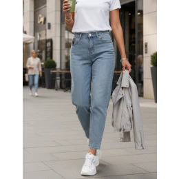 Dámské džíny s módním střihem mom fit, vytvořené pro pohodlí a ležérní styl na každý den. Vysoký střih a klasická linie nohavic zdůrazňují siluetu a zároveň poskytují pohodlí. Model je ideální pro ležérní a městské stylizace.