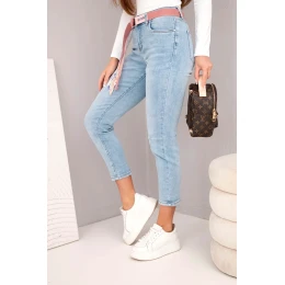 Dámské džíny s vysokým pasem a páskem, modré