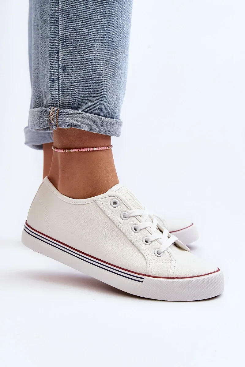 Dámské tenisky vyrobené z eko kůže. Svršek po kotníky. Nasazeno na jemné platformě. Zaoblené prsty. Klasické šněrování. Tento nadčasový model by neměl chybět ve vašem šatníku! Při výběru velikosti se řiďte tabulkou velikostí.