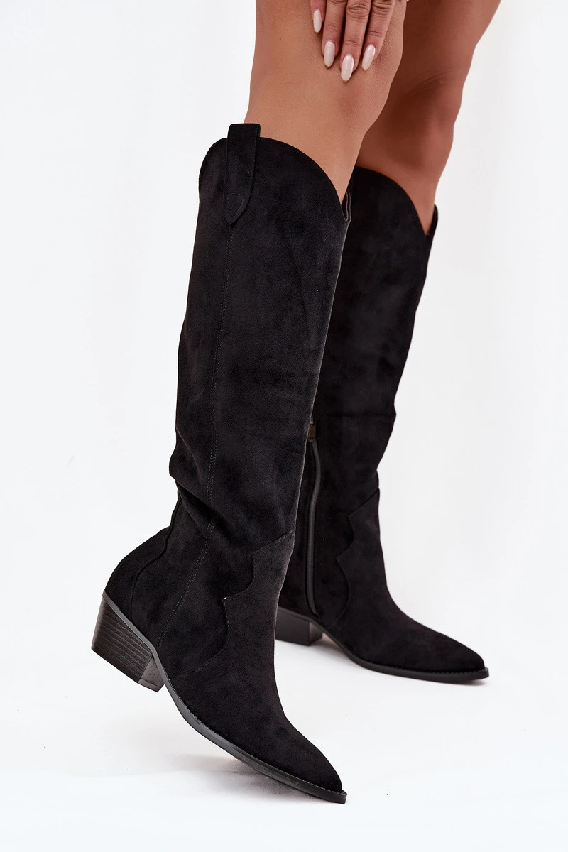 Dámské eko-semišové kovbojky na podpatku Jenaya – černé