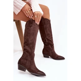 Dámské eko-semišové kovbojky na podpatku Jenaya – čokoládové