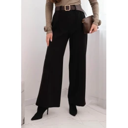 Dámské elegantní kalhoty s páskem a širokou nohavicí černé