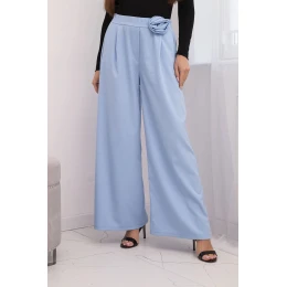 Dámské elegantní kalhoty s širokou nohavicí a ozdobným květem modré
