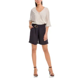 Dámské elegantní kraťasy se středně vysokým pasem a ozdobným páskem na zavázáni. Volný střih s dvěma postranními kapsami. Na výběr ze dvou barev. Jsou vyrobené z vysoce kvalitního materiálu a navržené podle nejnovějších trendů.
