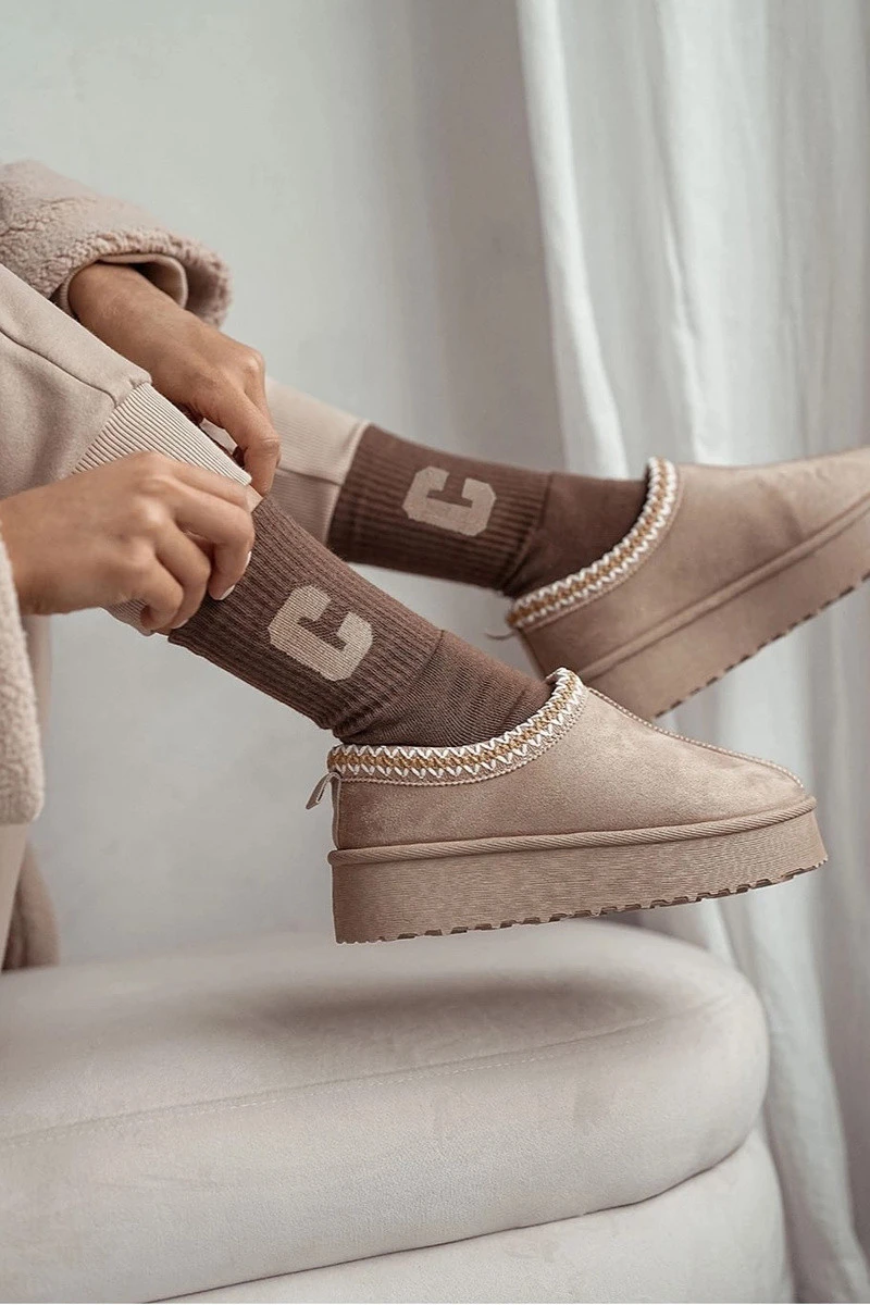 Dámské froté ponožky s písmenem C hnědé