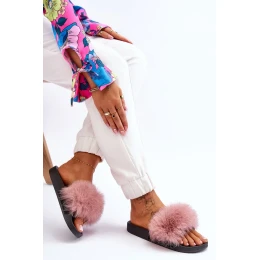Dámské gumové pantofle s kožešinou Růžove Lucrece