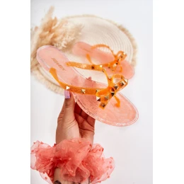 Jedinečné žabky jsou vyrobeny z pryžového materiálu. Mají ozdobné prvky na pruzích v podobě cvočků. Na přední straně je roztomilá mašlička. Vložka je vyrobena z plastu. Boty namontované na plochém podpatku. Tento model bude ideální pro horké dny! Rozhodně je musíte mít!
