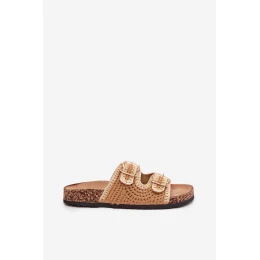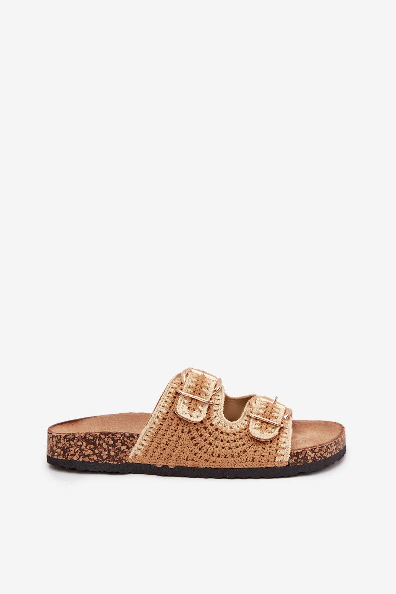 Dámské háčkované pantofle se zlatými přezkami – camel Fenira