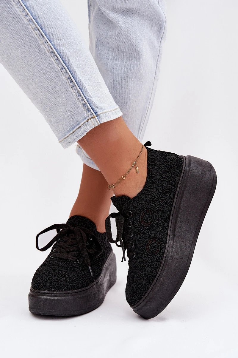 Dámské háčkované tenisky na platformě Černé Evalora