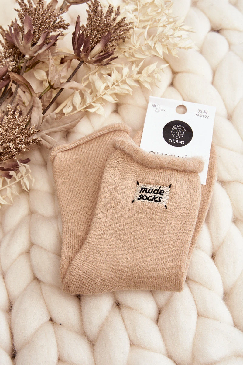 Teplé dámské ponožky ideální na mrazivé dny. Model s malým nášivkem. Lehký lemy zajistí, že budou skvěle padnout k objemu nohy. Určitě byste je měla mít!