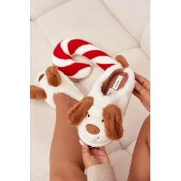 Dámské huňaté pantofle s motivem pejska – hnědé Faylen