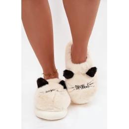 Dámské huňaté pantofle s motivem úsměvu – béžové Lexira