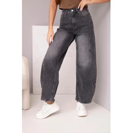 Dámské jeansové kalhoty Wide Leg s vysokým pasem a efektem praní černé