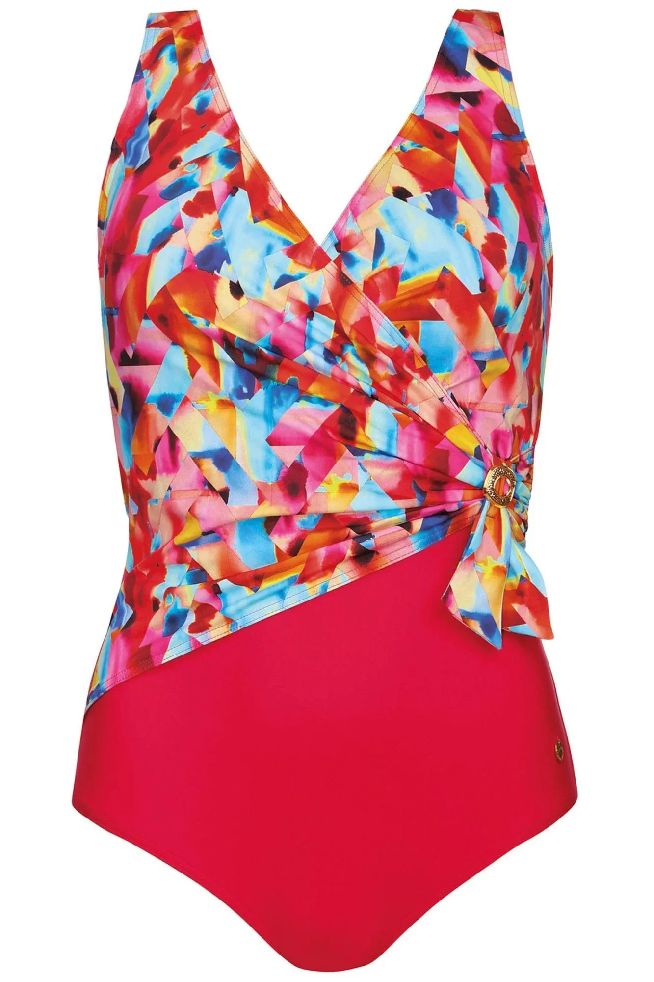Dámské jednodílné plavky 1069F23 55 Thailand 3 SELF - růžová barva - exotický vzor - vyztužené košíčky - vázání na zádech