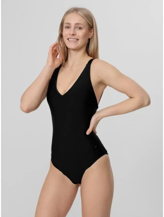 Dámské jednodílné plavky z příjemného rychleschnoucího materiálu. Plavky mají elastická ramínka, véčkový výstřih a větší vykrojení zad. Prostě model v klasickém elegantním střihu.